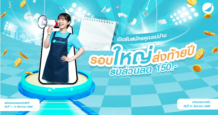 เข้าสู่เดือนธันวาคม เดือนสุดท้ายของปีที่หลายคนกำลังมองหาโอกาสใหม่ ๆ ให้ชีวิต 🎄พิเศษเฉพาะเดือนธันวาคมนี้! BeNeat เปิดโปรรับสมัครคุณแม่บ้านสำหรับ คนที่อยากเริ่มต้นทำงานกับบริษัท ที่ดูแลทั้งงานและชีวิตคุณไปพร้อมกัน 🤍