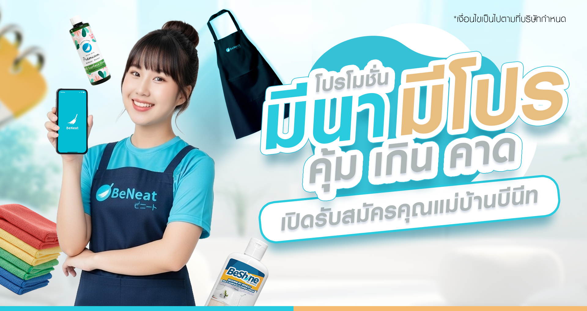 เริ่มต้นเดือนใหม่ด้วยโอกาสใหม่! มีนาคมนี้ BeNeat เปิดรับสมัครเพื่อนร่วมงานตำแหน่ง “คุณแม่บ้าน” พร้อมจัดหนักโปรโมชันสุดพิเศษสำหรับผู้ที่อยากมีรายได้เสริมหรือยึดเป็นอาชีพหลัก บอกเลยว่ารอบนี้พิเศษสุดๆ!
