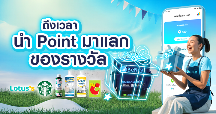 กดเข้าแอป BeNeat Cleaner แล้วไปที่เมนู “พอยต์” ตอนนี้เลย — เช็กพอยต์ แลกง่าย ได้ของจริง คุ้มทุกคะแนน!