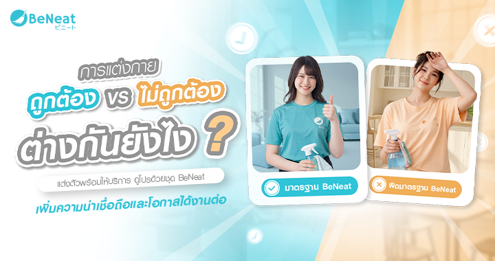 การแต่งกายที่ถูกต้อง สร้างความประทับใจและความไว้วางใจให้กับคุณลูกค้า มาเช็คความพร้อมกันหน่อยดีกว่าว่า แต่งตัวแบบไหนถึงจะเรียกว่าเป็น คุณแม่บ้าน BeNeat ตัวจริง 🌟